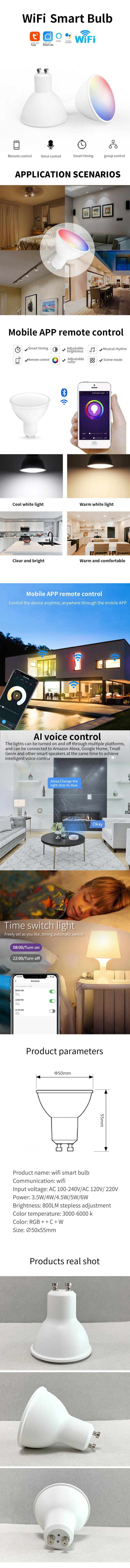 Introduzindo o bulbo esperto do diodo emissor de luz de Wifi – a solução perfeita a trazer sua iluminação da casa ao nível seguinte. Este bulbo do diodo emissor de luz 10W é compatível com sistemas de Android e do IOS, e seu tamanho de 60mm x de 118mm faz perfeito para toda a casa. Com cor ajustável e modos múltiplos da cena, este bulbo é capaz de criar uma variedade de efeitos da luz diferentes para serir todo o humor. Sinal de adição, com suas capacidades do RGB, você pode facilmente mudar a cor da luz para combinar sua decoração. E, com sua característica do controle da voz, você pode controlar o bulbo com apenas sua voz. Para o final na conveniência e na flexibilidade, o bulbo esperto do diodo emissor de luz de Wifi é a escolha perfeita.